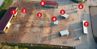 Das Gelände ist terrassenförmig angelegt. Jede Ebene hat eine Funktion und animiert die Pferde, sich den ganzen Tag aktiv zwischen diesen zu bewegen.